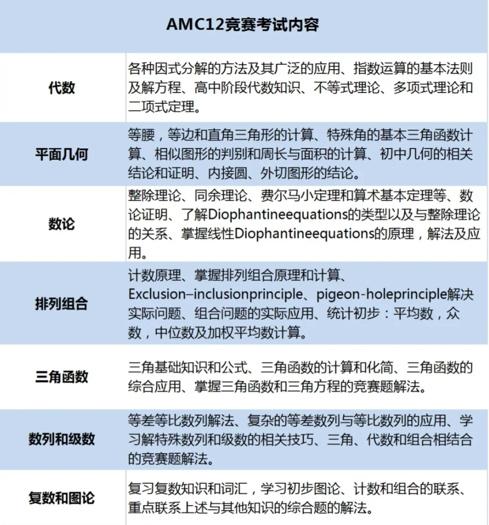 全面掌握AMC12覆盖的高中数学内容,包括但不限于,具体见图片: