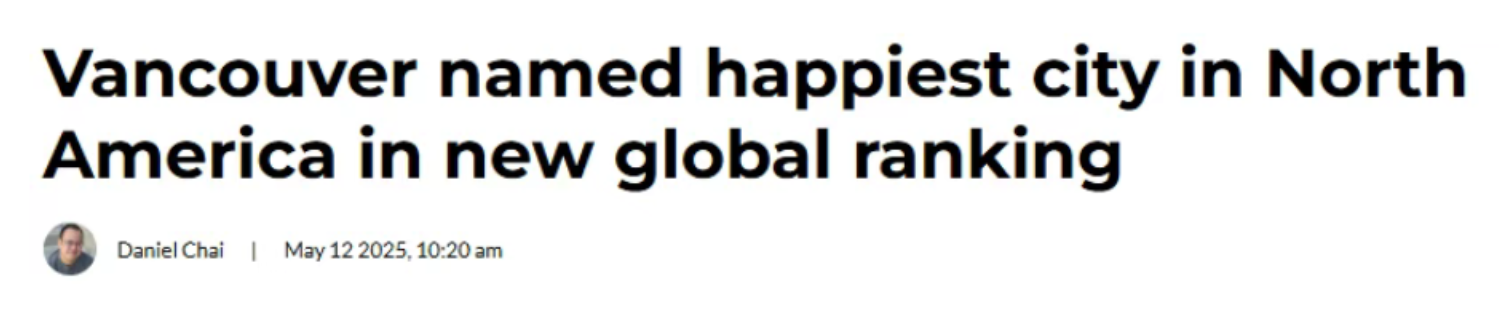 据生活品质研究所(Institute for Quality of Life)新鲜出炉的 2025 年 “全球幸福城市指数” 榜单显示, 温哥华在全球城市中高居第 11 位,不仅是加拿大唯一斩获金奖的城市,更是北美排名最高的城市。