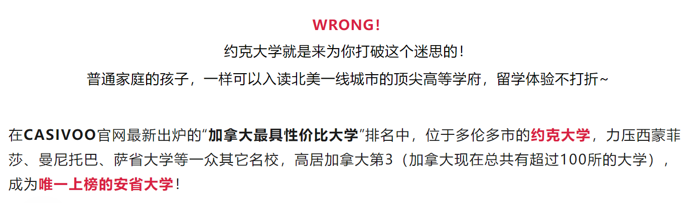 性价比超高的约克大学,让普通中国家庭的孩子,实现北美发达国家一线大都市的留学梦!