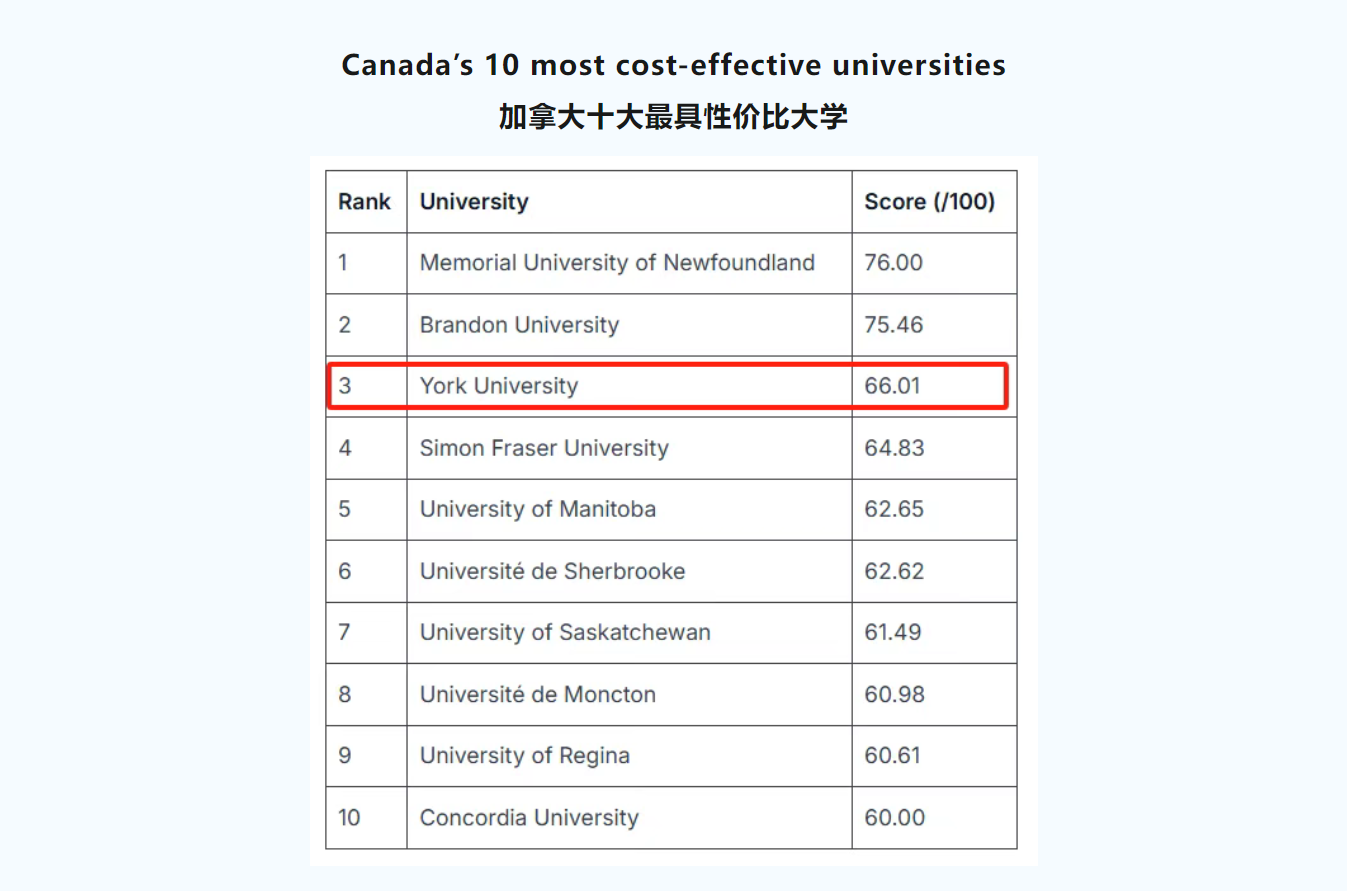 选择约克大学,就是选择了一场 高回报的教育投资 。在这里,你将以最合理的付出,收获最丰硕的知识果实、最广阔的人脉资源和最难忘的人生体验!