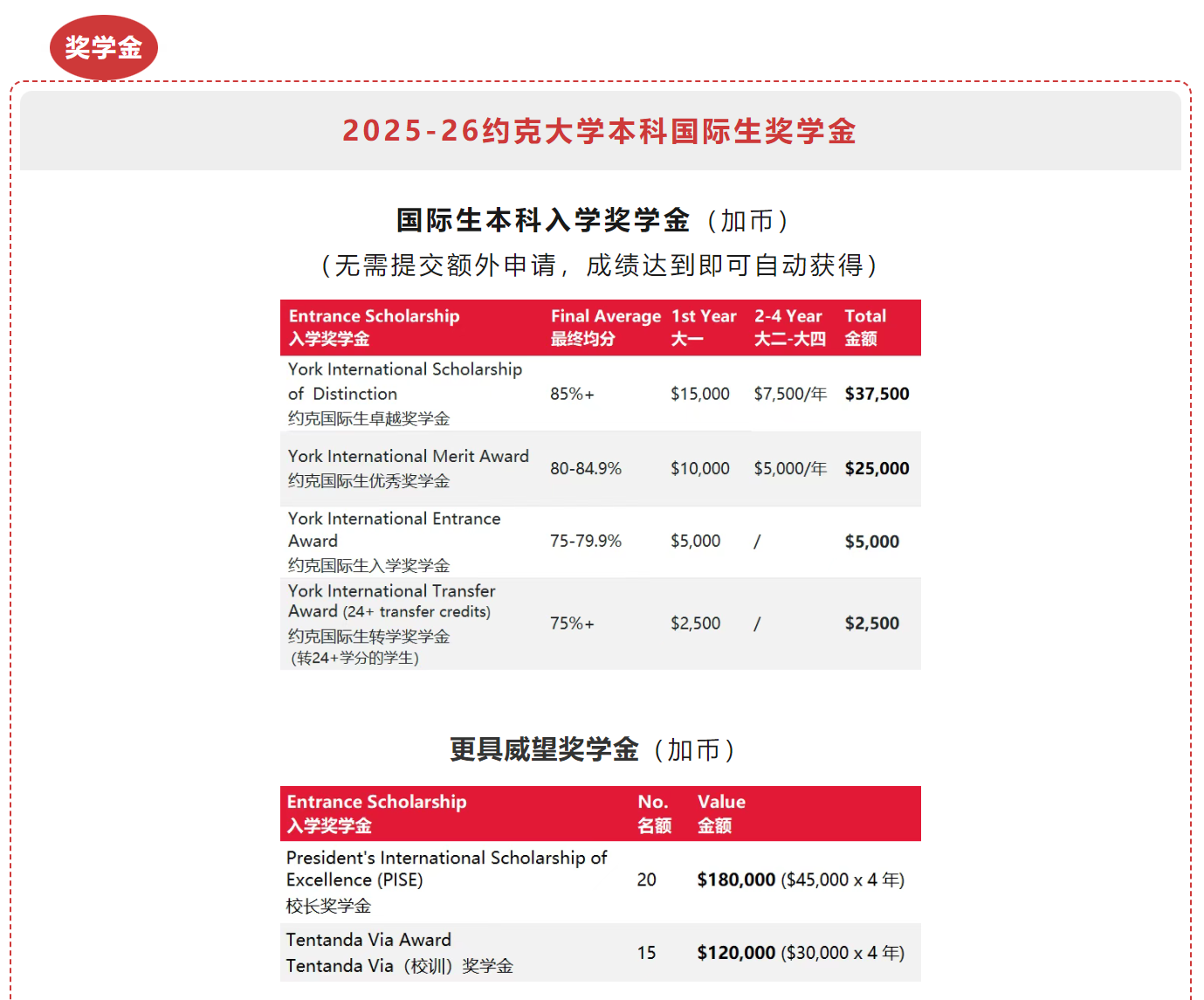 作为一所研究型的公立大学,约克不仅在学费上具有极高的性价比,而且还为学生提供 多种奖学金/助学金 ,来奖励优秀和资助困难学生,极大限度地减轻了家庭的经济负担。