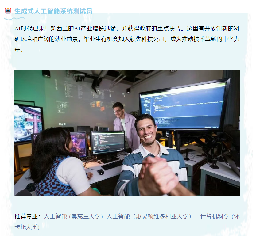 老师今天就为大家整理了新西兰高校中开设的相关专业,让你能够抓住“新职业”浪潮带来的无限机遇。