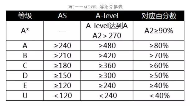 举个例子,英国高中 AS 数学有 3 个 Unit ,如果 AS 数学想要达到 A ,并不需要每个 Unit 都达到 A ,只需要 3 个 Unit 总的 UMS 加起来打到 80*3=240 就算是 A 了。整个英国高中 A-level 数学要达到 A ,也是一样滴。只需要总的 UMS 加起来达到 80*6=480 就算是 A 了。所以,最终一个科目拿到什么等级,还得由所有 Unit 的 UMS 加起来才知道。