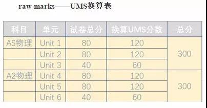 第二步 , AS 考试一大特点就是分数统计比较复杂。科目和试卷组合分数不同,判分标准就不一样。考试的每份卷子的难度是不一样的,分值也不太一样,所以有一个叫做 UMS(Uniform Mark Scale) 的分数,以百分比的形式来表示。