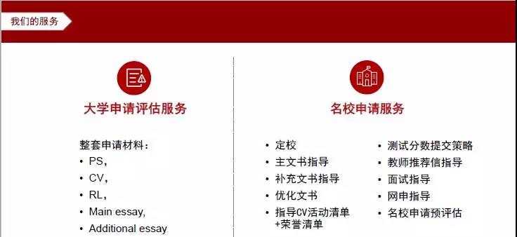 ➤大学申请评估服务主要包括以下四大类(美金支付):
