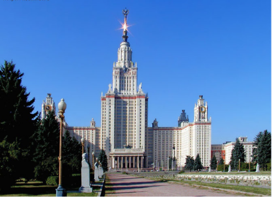 莫斯科国立罗蒙诺索夫大学(简称莫大)是俄罗斯最大的教学、科研、文化中心。老校舍位于莫斯科市中心的红场近旁,新校舍坐落在列宁山上。莫斯科大学成立已有 250多年的历史。 莫斯科大学是全俄罗斯最大的大学,也是俄罗斯最大的学术中心。莫斯科大学共有 23个系,15个教学和学术中心,11个科学研究所,并开设有44个高等职业教育专业、180个研究生专业方向。在莫斯科大学工作着4,300名教授和教师,4,800名研究员,其中7,800人拥有博士学位,有167人为俄罗斯科学院院士。