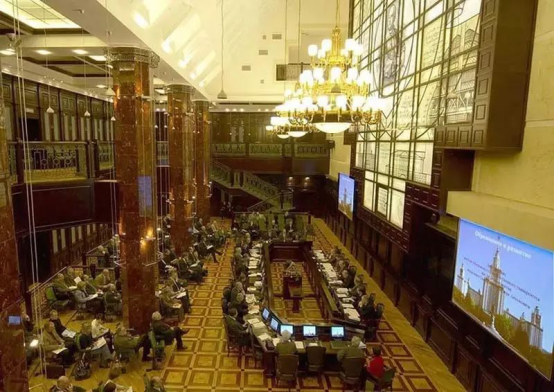 莫斯科大学图书馆是俄罗斯最古老的图书馆之一,也是高校中最大的图书馆,建于 1756年,共有藏书 8,500,000册。该图书馆拥有6万多读者。每年约有180万人次光顾图书馆,借出图书400万册。该馆共有16个借书点,60个阅览室,3300个座位。馆藏书籍供莫斯科大学各教学、科研机构使用。而且莫大的每个系都有供学生读书的阅览室。