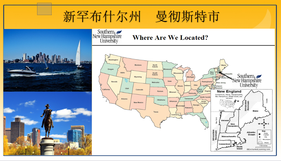 斯特市的Merrimack河畔。学校拥有24座主要的建筑物,包括一个新的学术交流中心,教学楼和行政楼,新建学生公寓,拥有多媒体教室和艺术实验室;装备完善的电子数据库图书馆;一个高科技的金融分析中心;一个美术馆,一个计算机中心,一个带有餐饮设施的学生活动中心,一个餐饮旅游中心和一个休闲娱乐中心,一个游泳池,运动场和网球场等等。这是一个平和静谧的地方,在这里你将享受到有效地安全保障和热情的欢迎!