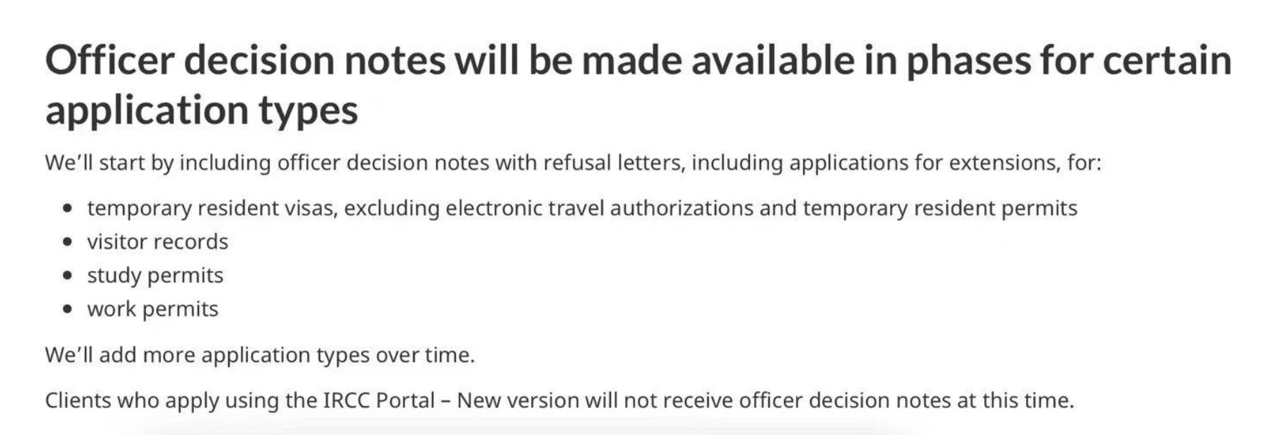 过往申请拒签后想要获得拒签理由,需要付费调档,此次更新既方便了申请人,又减少了IRCC的工作量