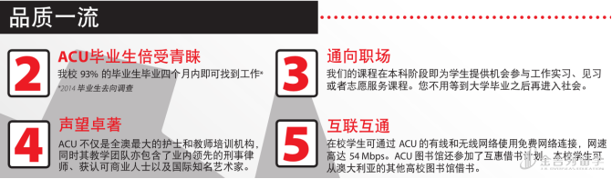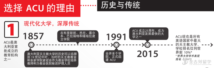 澳大利亚天主教大学是一所由政府资助的公立大学,拥有超过 150年的历史传承,学校教学质量之高享誉国内外。学校欢迎任何背景的学生前来读书。ACU专注于提高学生的社区参与度和社会实践能力,旨在将学生们培养成当今社会的有用之才。