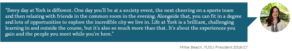 在 约克大学, 你 将 有无与伦比的经验 ——你只需要 参与!在这里, 你会交 到 朋友 , 发现新的激情 ,并且 学习宝贵的技巧 , 会 收获 光明的未来。