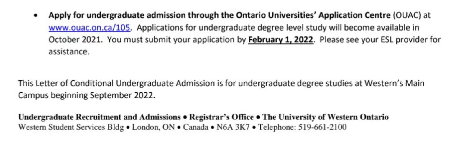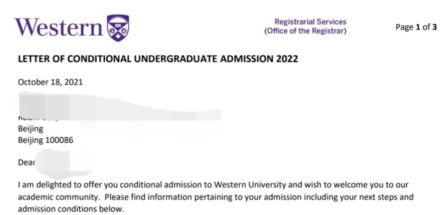 录取结果:西安大略大学 Bachelor Of Science 大二