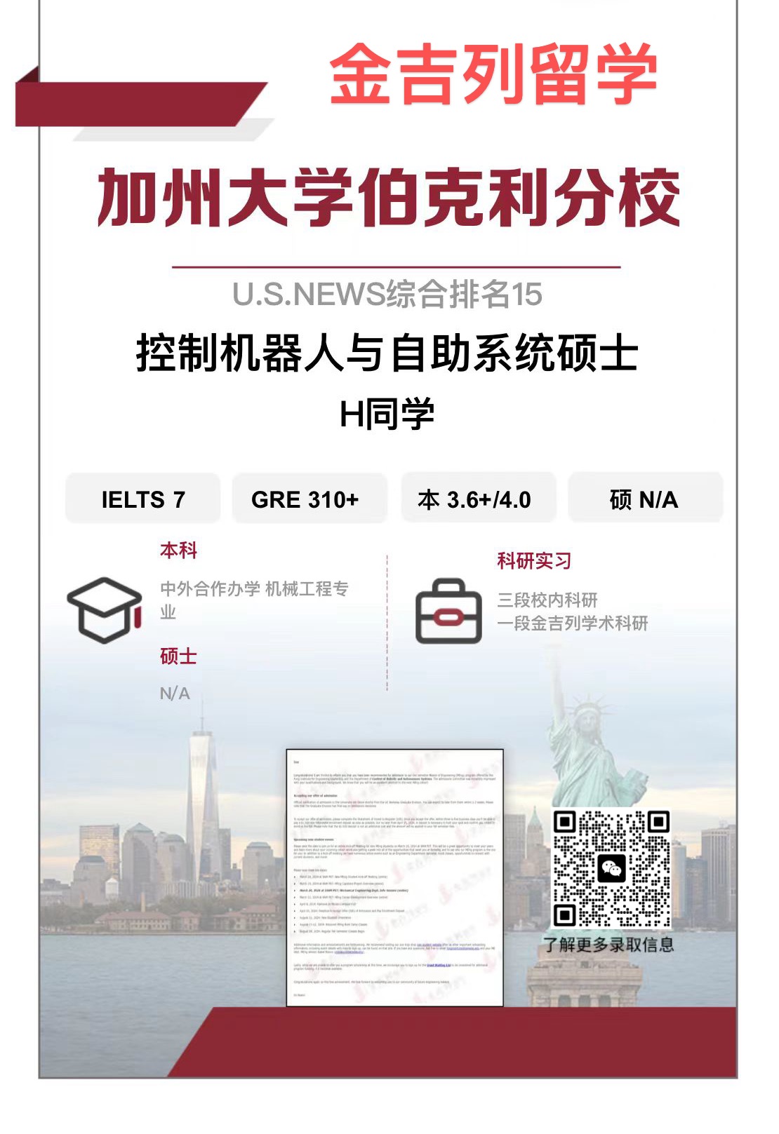 给大家放一封加州大学伯克利分校的录取,大家快来接好运吧,祝愿大家顺利圆梦UCB。
