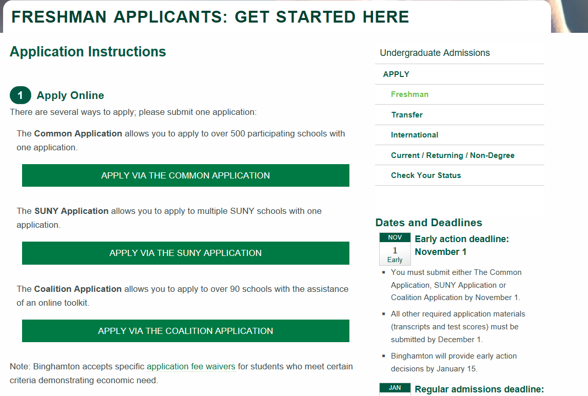首先,填写网上申请表。你可以通过以上3种方式申请,COMMON系统,SUNY自己的系统与我们并不常见的COALITION,但大多数申请者都会通过第一与第二种方式在网上填写申请表申请。