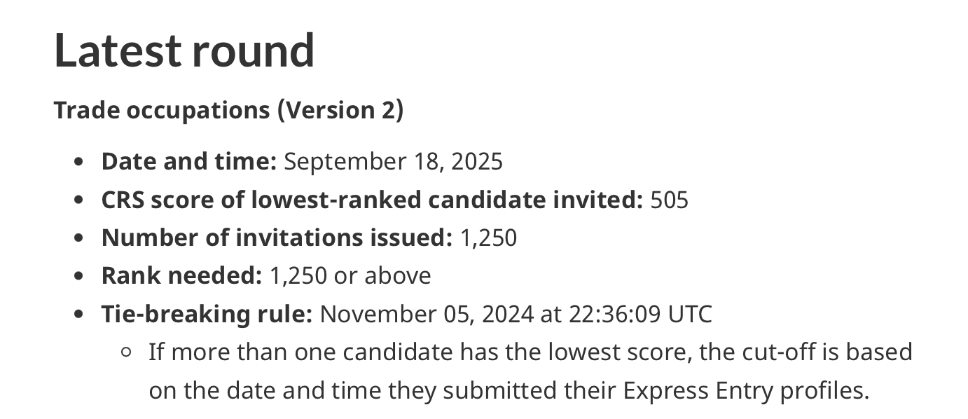 这是今年首次针对【技工类职业】的快速通道抽签。上一次同类别抽签是在 2024年10月23日,当时的CRS分数线仅为433分,明显低得多。