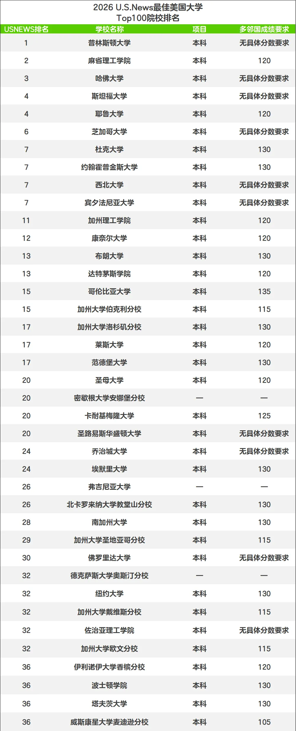 在最新的2026年U.S.News美国大学排名中, 普林斯顿大学继续稳居全美第一,这已经是连续第15年霸榜了。