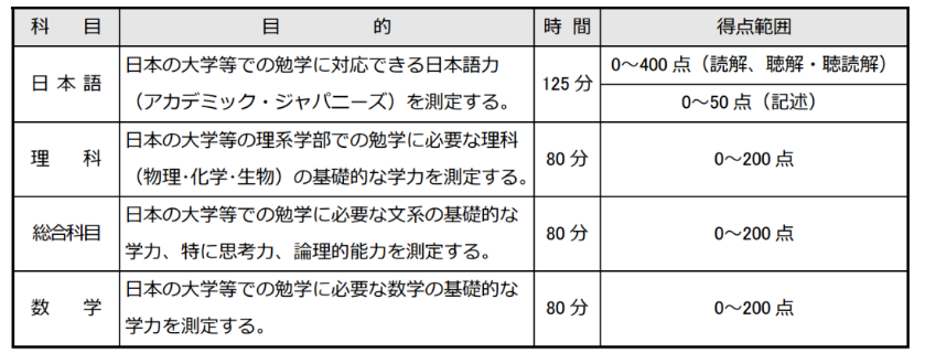 EJU的科目一共有 日语、综合(理科/综合科目)、数学(文科数学/理科数学) 这三个考试内容。