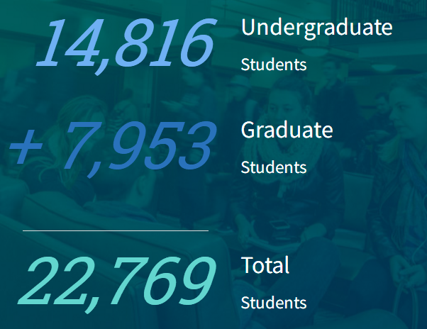 德保罗大学现在校生14816名本科生,研究生7953名,总共有22769名在校学生。学生来自美国不同的五十个州,114个国家,来自伊利诺伊州的学生占了67%。