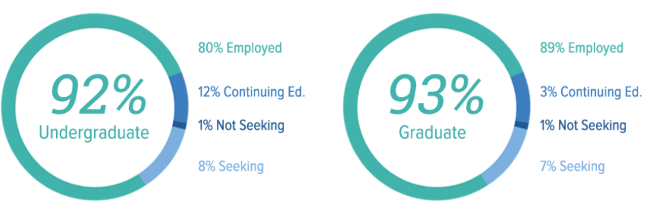 在德保罗大学中,2017名本科生和研究生学位获得者中,超过90%的人在毕业后6个月内就业或者继续深造。