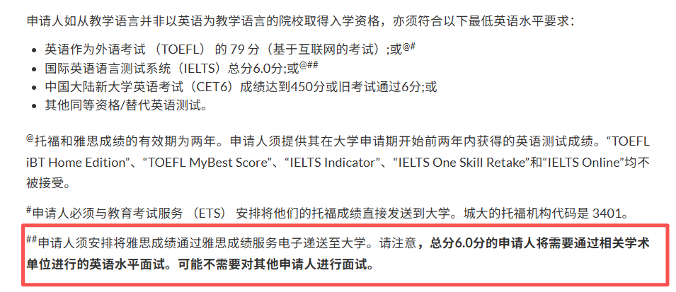 香港城市大学26fall开始降低雅思成绩要求,从原来雅思6.5分,降为雅思6分,但是请注意哦,如果提供的是6分雅思,需要面试哦。