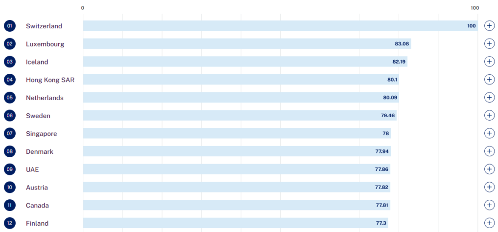- 瑞士稳坐第1位(与去年排名持平) ;
