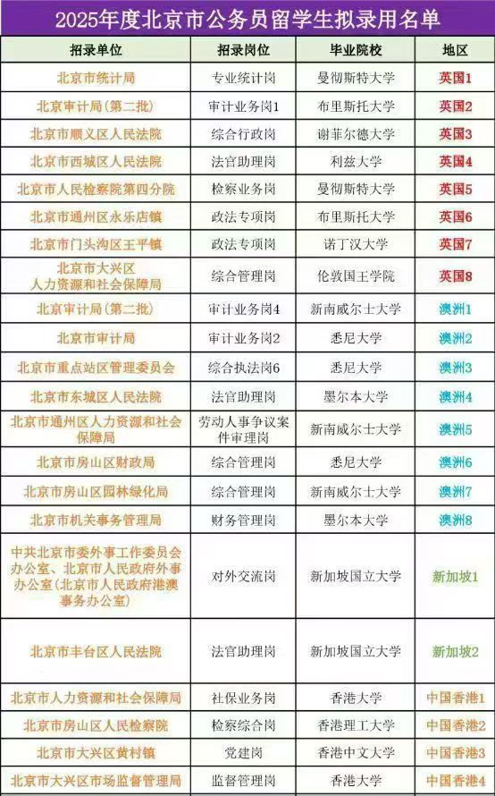 近日,2025年的留学生在京沪GWY录用名单出炉~
