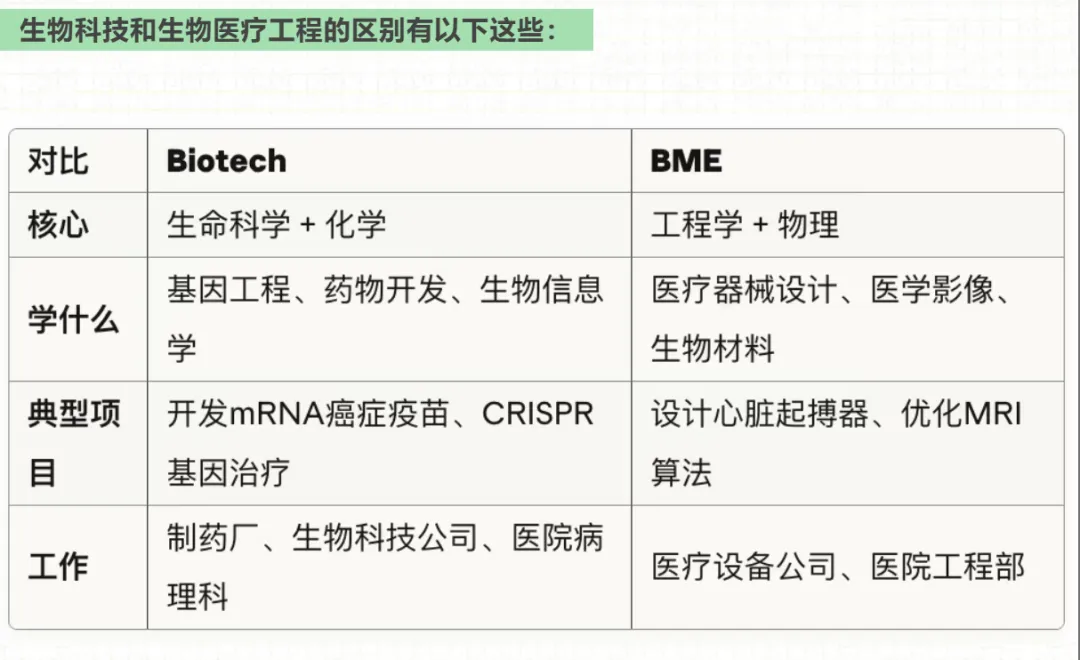 - 生物医学工程:“造设备”和“造器械”,用工程手段辅助医疗