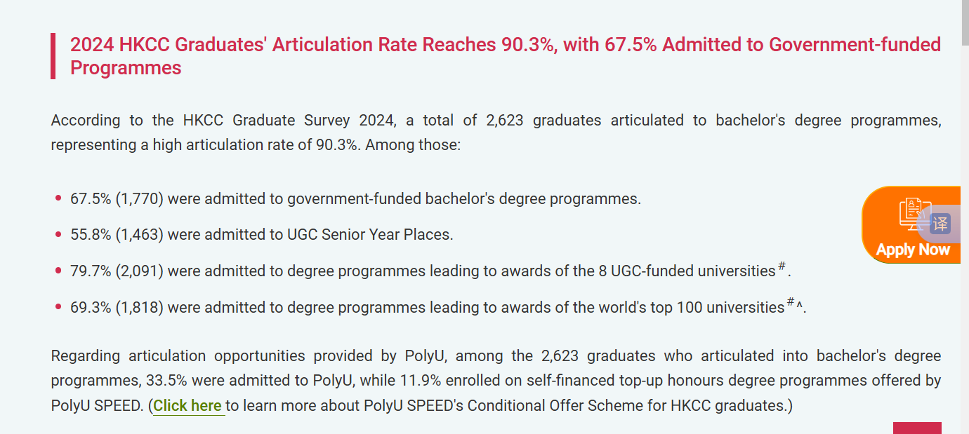 香港理工大学香港专上学院(PolyU HKCC):2024年整体升学率达90.3%(升读本地或海外学士学位课程)