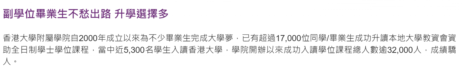 不是所有副学士课程都一样!港大附属学院、理大专上学院、城大专上学院属于一梯队,升学率和认可度很高。