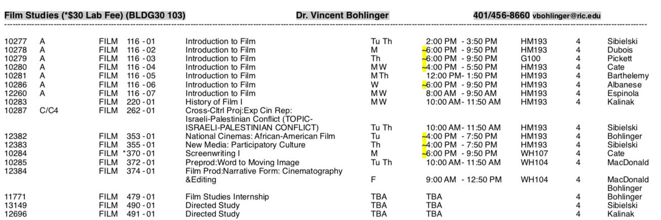 上图是学校 2018 年影视研究( Film Stuies )本科专业的课程表,可以看到,课程从早上 8 点到晚上 9 点 50 分,但具体的时间安排,还是会根据学生的选课情况,每个人的情况也会稍有不同。
