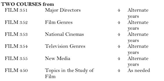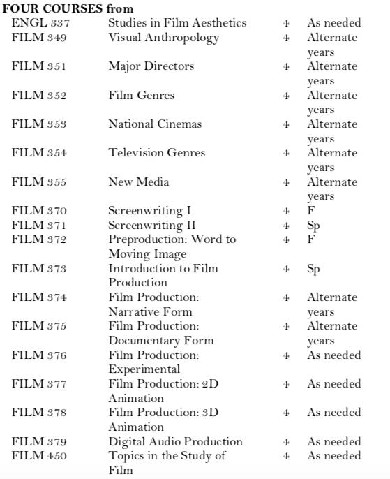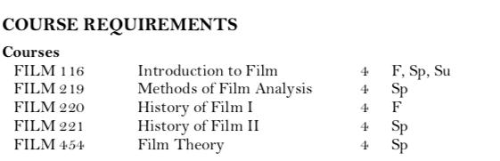 以上 5 门科目,是学生本科学习大一到大四,每年的 必修科目 ,有包含了电影历史、影视理论、影视分析等科目。学生通过四年的时间,逐一完成。