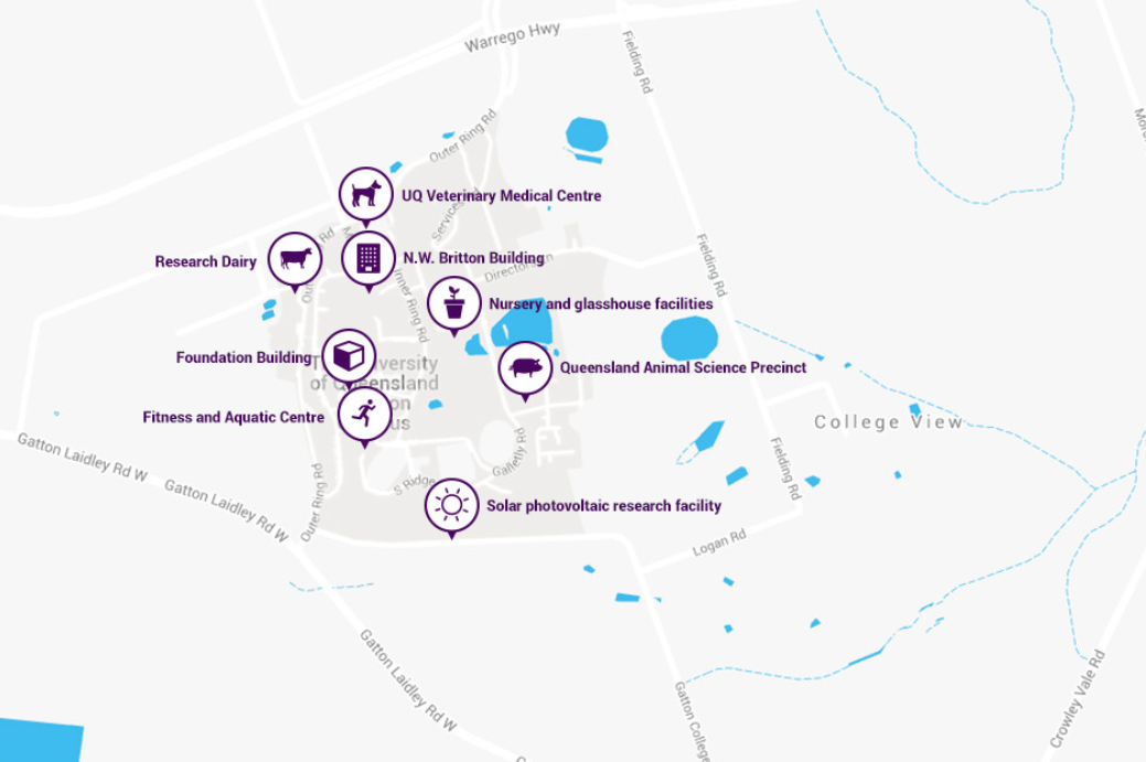 Gatton校区始建于1897年,位于洛克耶谷,距离布里斯班中心以西87公里,是澳大利亚较古老的农业学院之一。Gatton校区设有专门的动物、植物和兽医学设施。广阔的土地上充满了实践与研究的机遇。