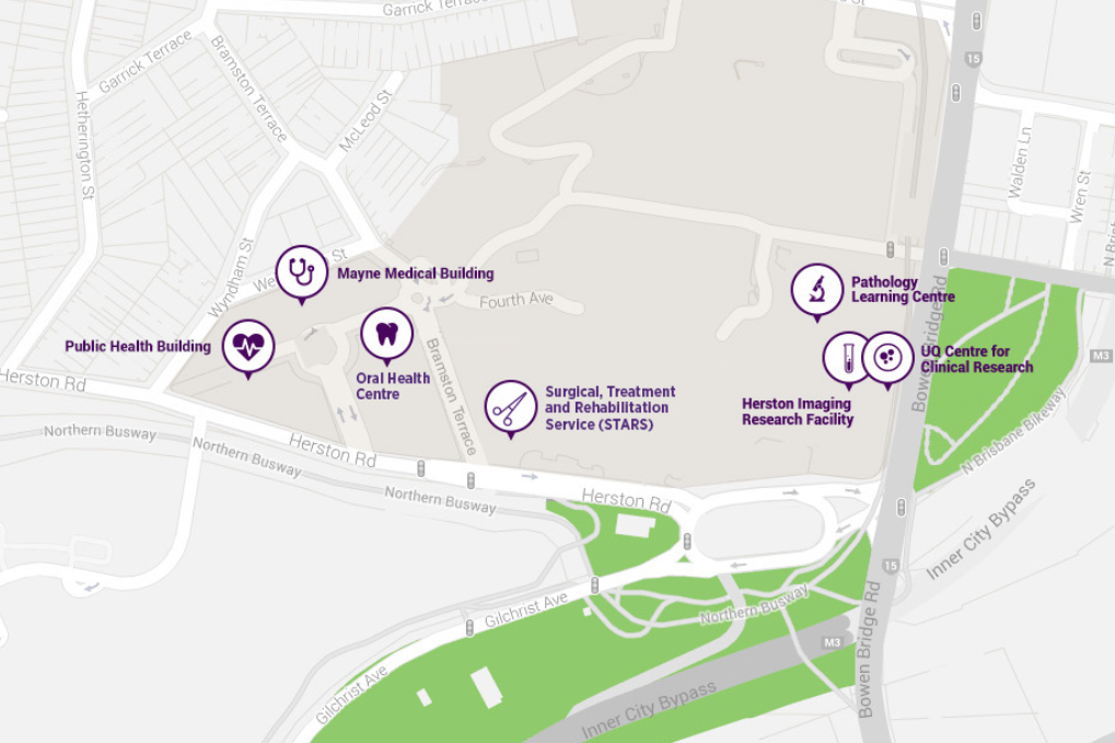 交通方式:Herston校区拥有十余条直达CBD的公交路线,交通便利。附近的公交站有Royal Brisbane Women's Hospital和Herston站;较近的火车站有Windsor、Bowen Hills和Fortitude Valley站;周边停车空间有限,建议尽可能使用公共交通通行。