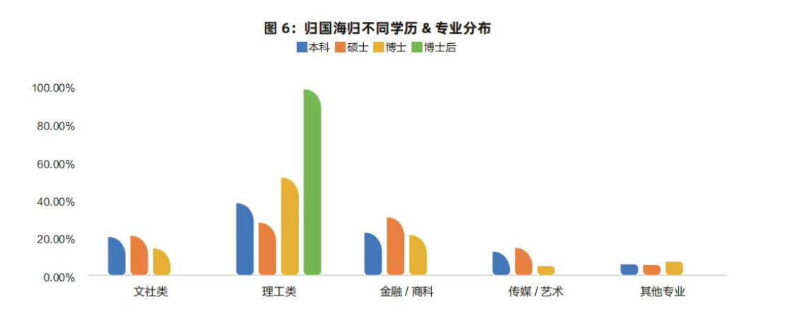 学历方面,硕士海归占比高达78%,堪称求职的主力;博士占14%,本科生仅占7%。不同专业对学历的需求差异明显:
