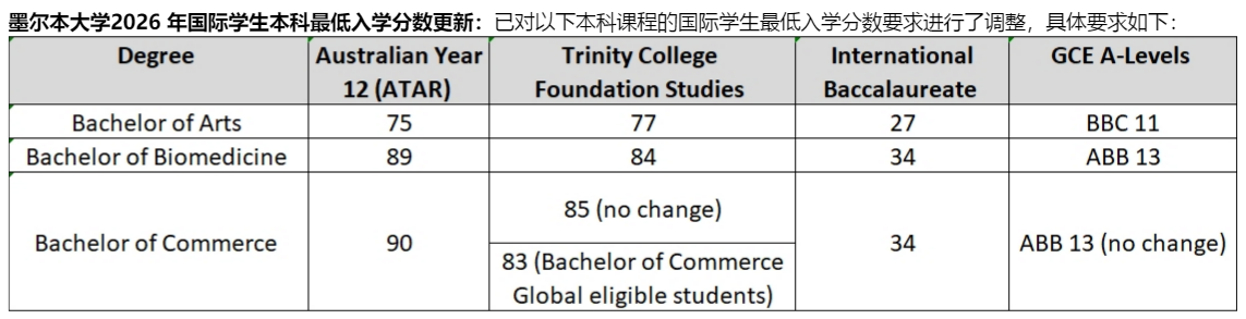 重要提醒:想申墨尔本大学 2026 的同学请注意,墨大新通知——2026 本科入学要求有变化了!