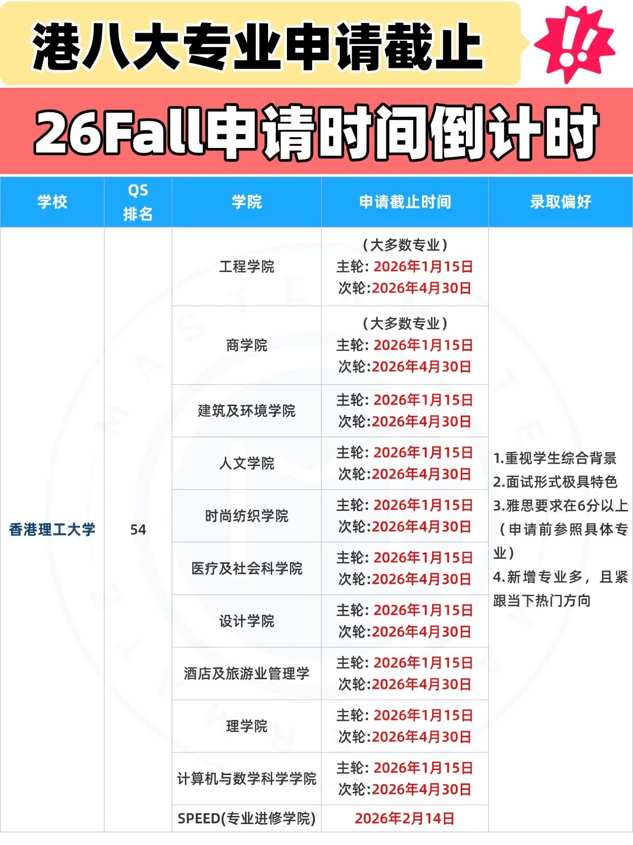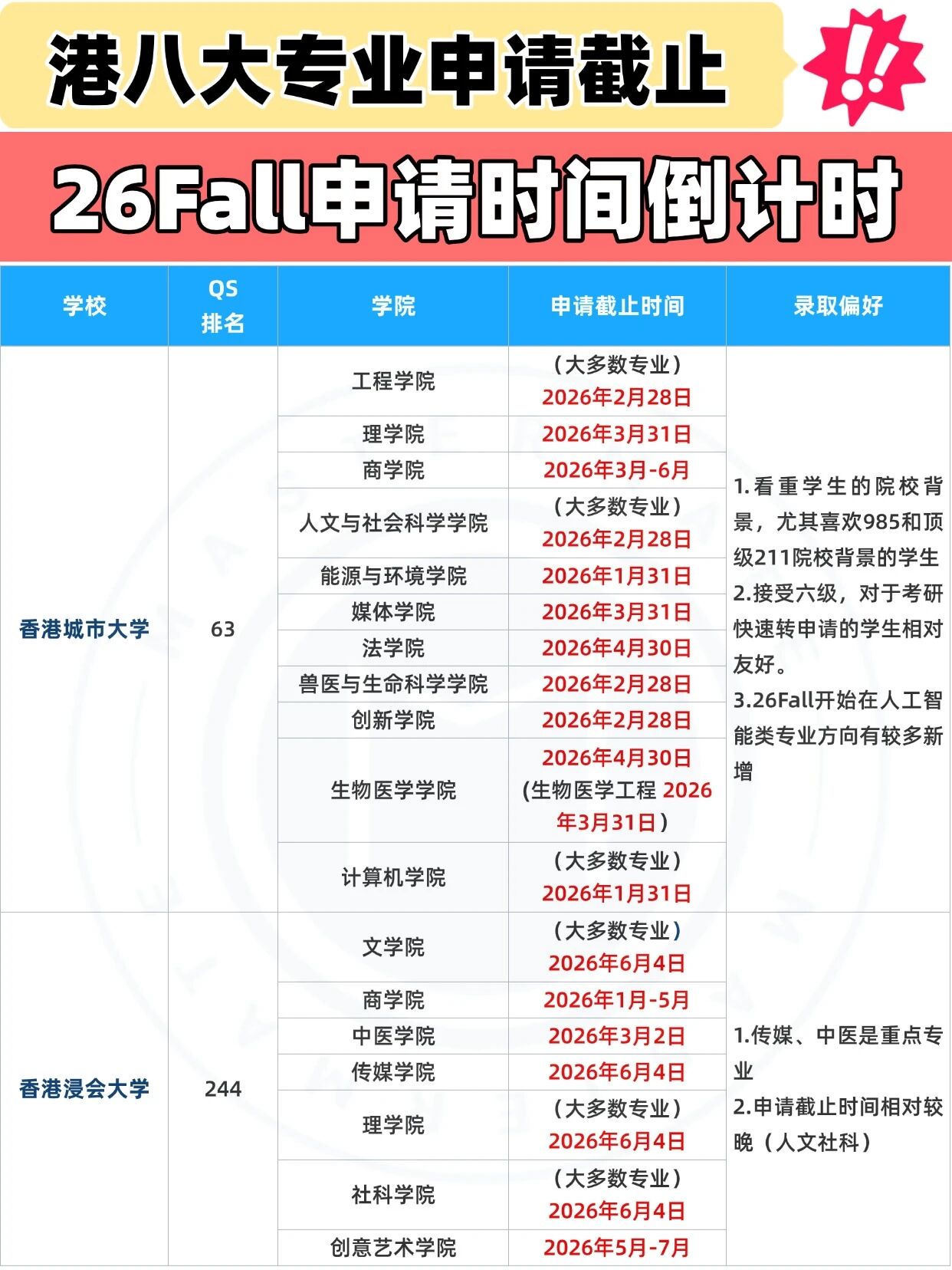 来得及!但要抓紧!香港大部分专业26年1-4月才截止,不过港校都是“先到先得”原则,早递交早占坑!