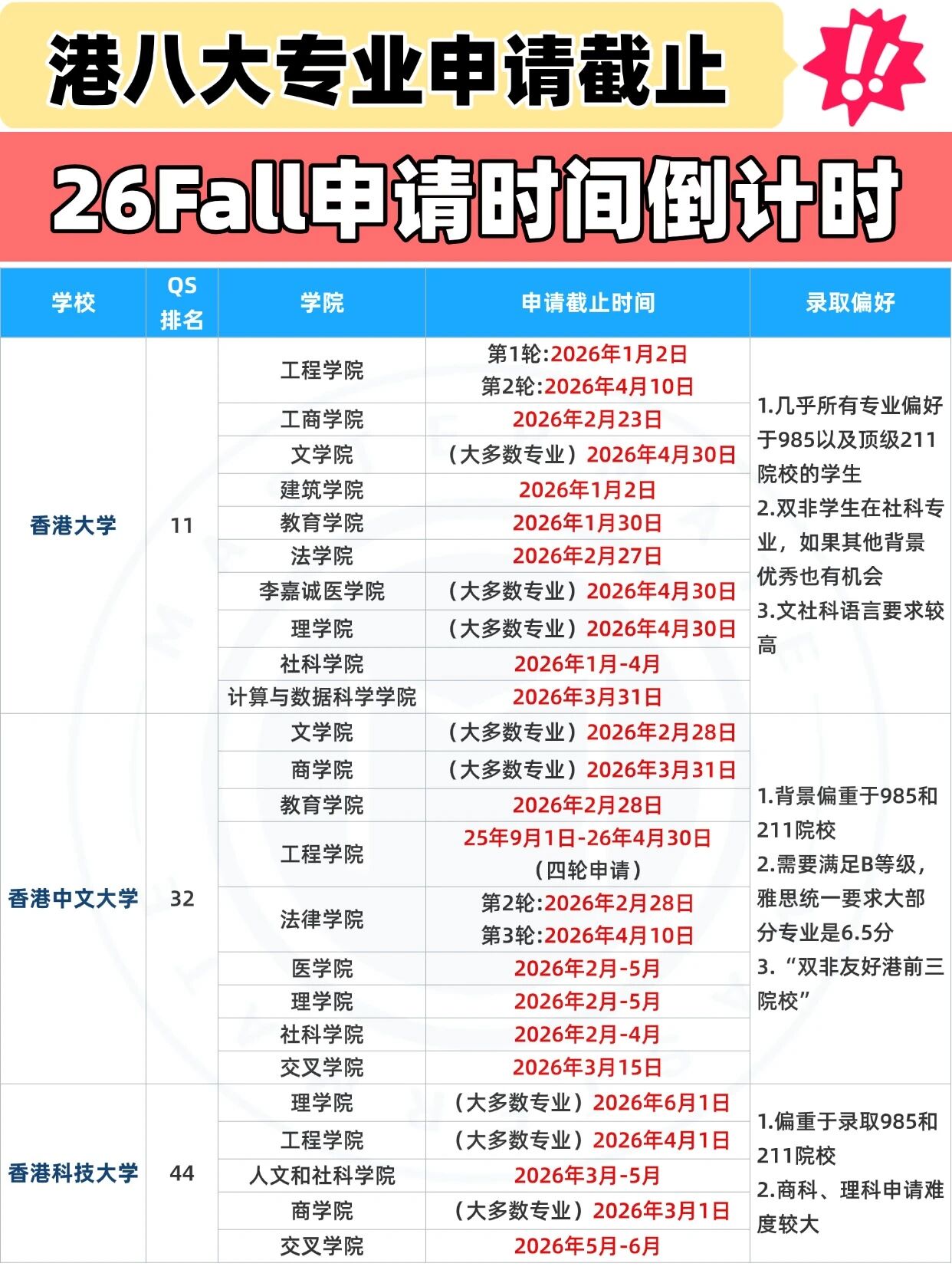 先划重点:港八大截止时间汇总(具体专业一定要查官网确认哦!)