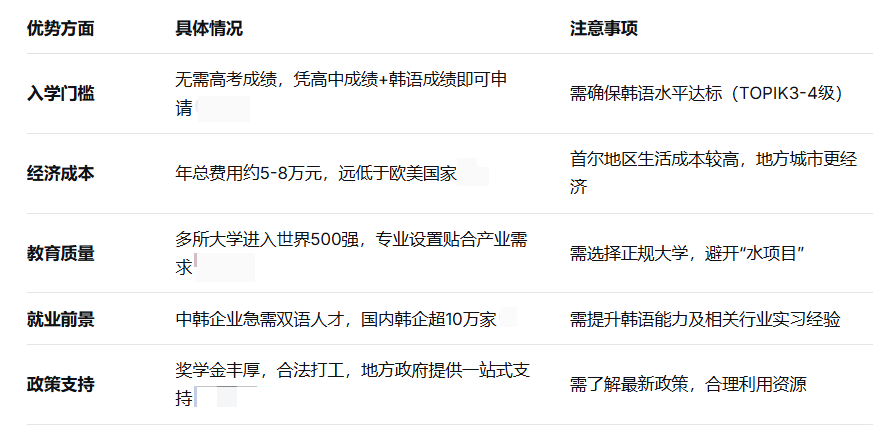 下表整理了韩国留学的主要优势与需要注意的问题: