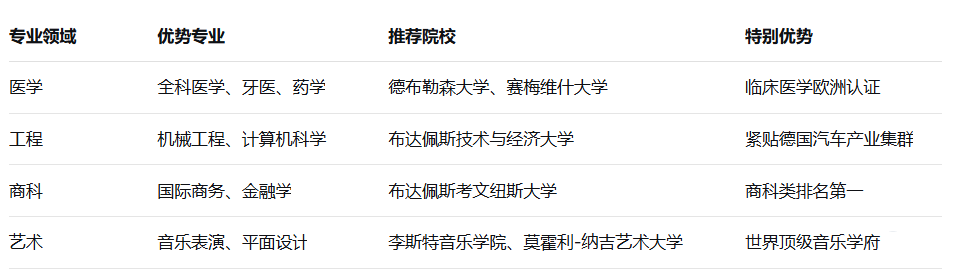 下表为匈牙利热门专业与推荐院校:
