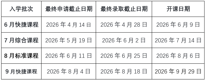 若学生已错过1月/2月入学课程,可联系招生办公室(Admissions)申请延期至上述任一后续入学时段;