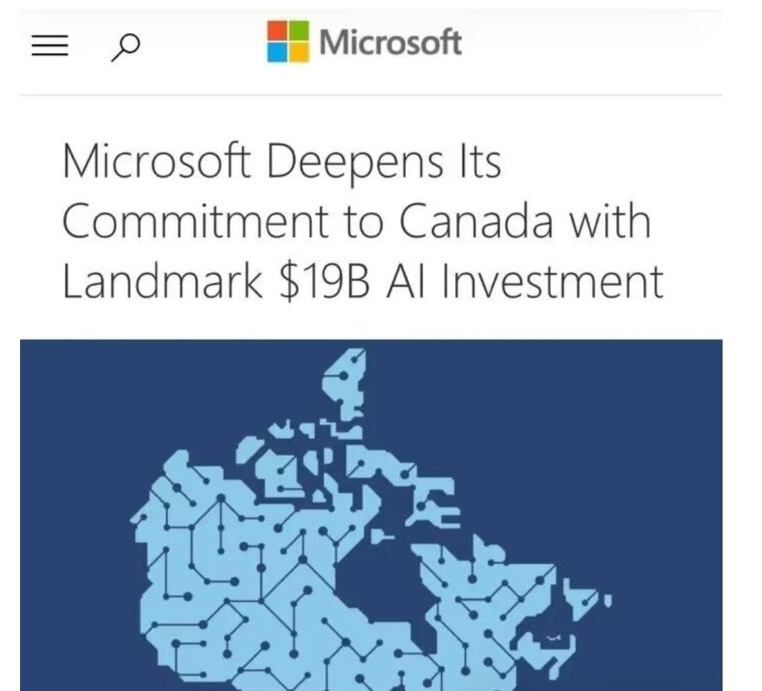 近看到一条科技圈的消息,对留学生来说其实非常关键:微软宣布向加拿大人工智能领域投资190亿加元。