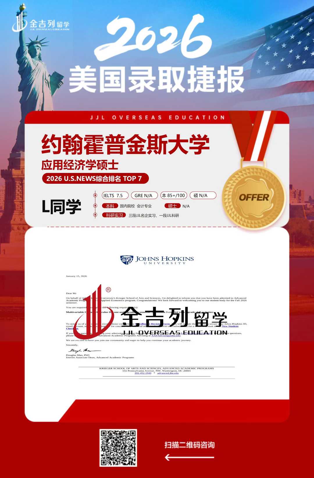 约翰霍普金斯大学 2026 UsNew TOP7 应用经济学硕士+1