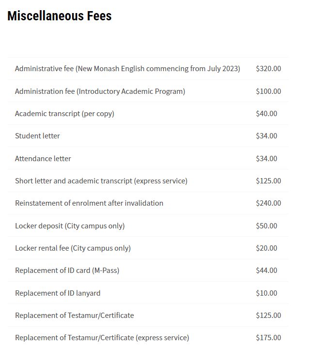 费用:官网参考费用 每10周6000澳币,其他杂费参考下图哦
