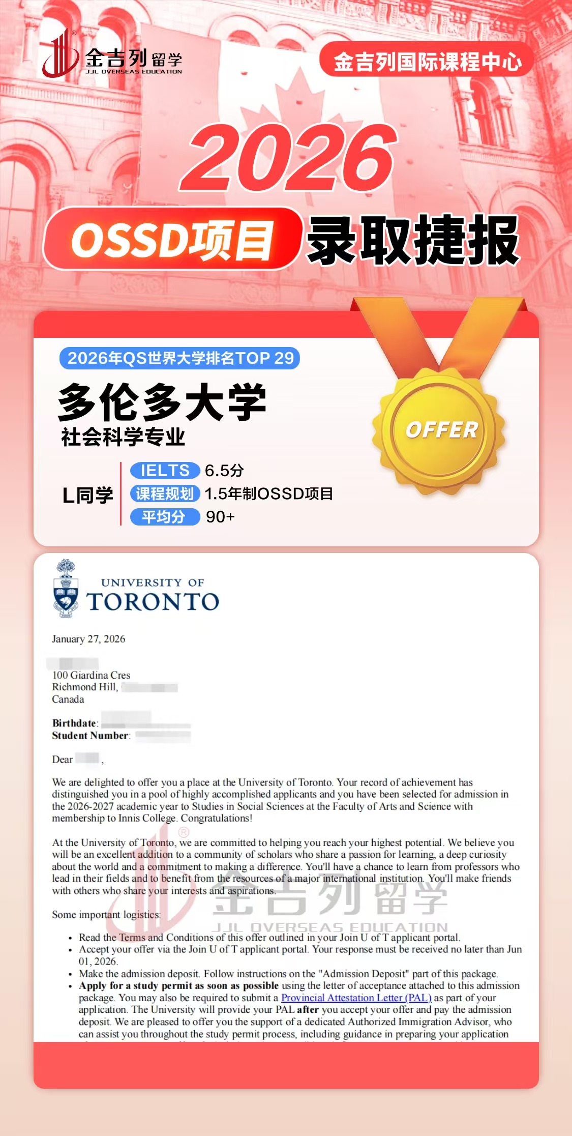 金吉列OSSD项目学生2025年录取