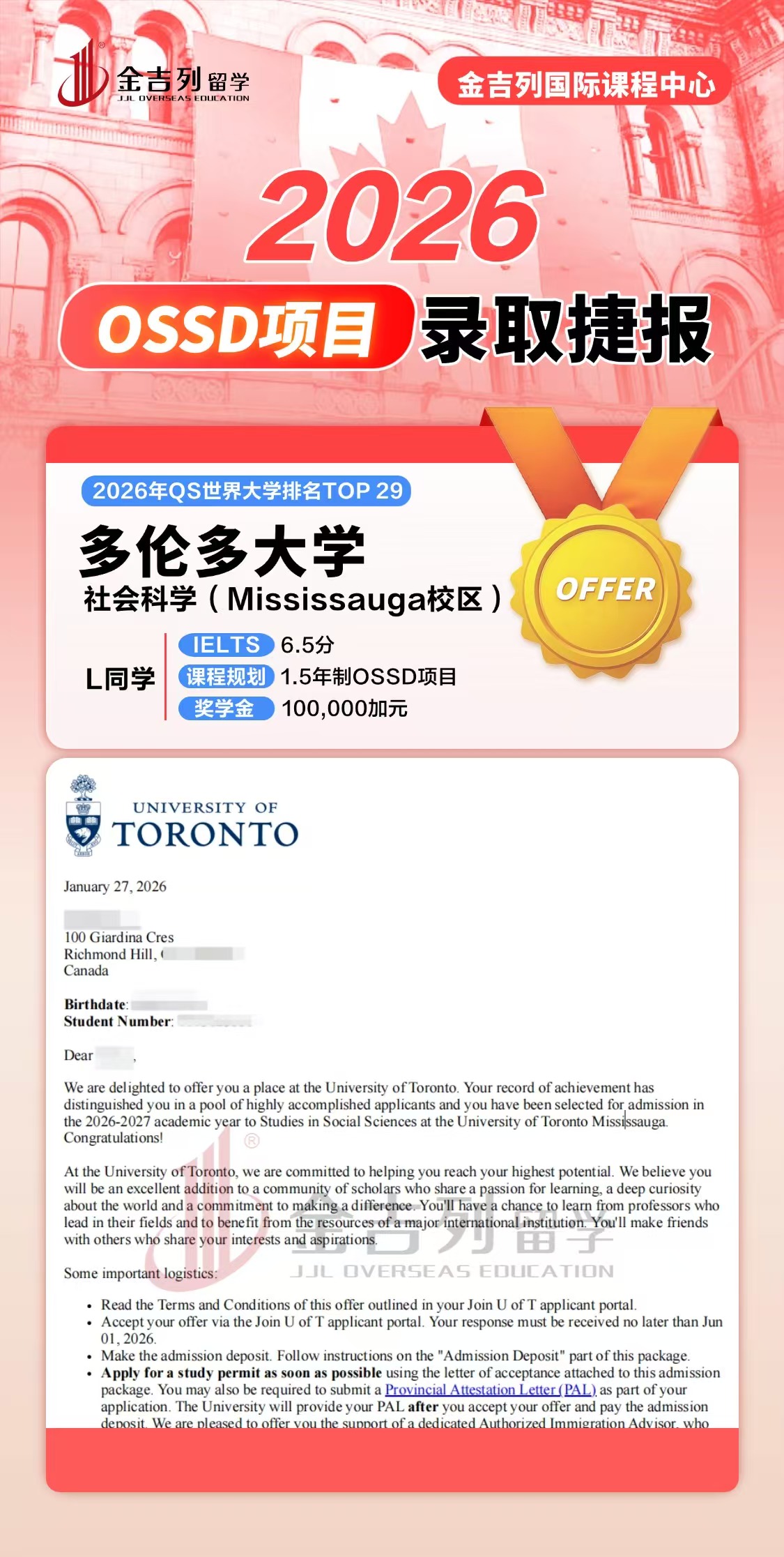 金吉列OSSD项目学生2025年录取