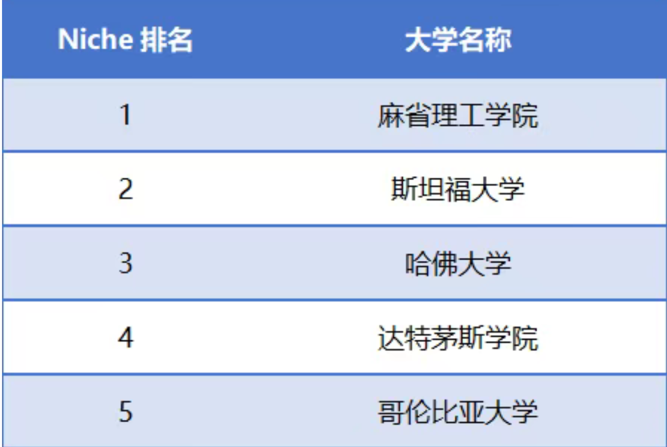 我们仔细观察这个表单就会发现,长期处于高学费争议中心的美国私立大学及文理学院,依旧包揽榜单的大部分席位,麻省理工学院位列哈佛、达特茅斯、哥大、普林斯顿、布朗五所藤校位居榜单前10名,这足以看出中产家庭对院校学术质量的高要求!