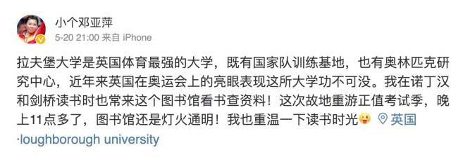 世界冠军邓亚萍也是我们拉夫堡大学的迷妹!