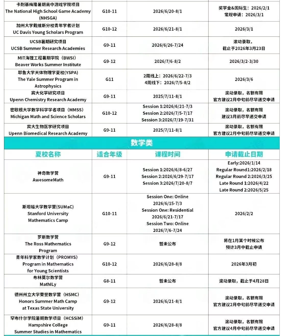又到了一年夏校申请关键时期!