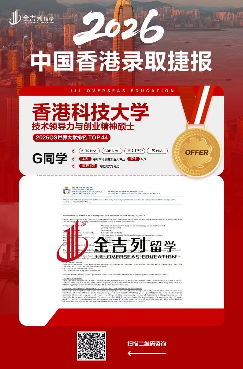 > 香港科技大学技术领导力与创业精神硕士录取