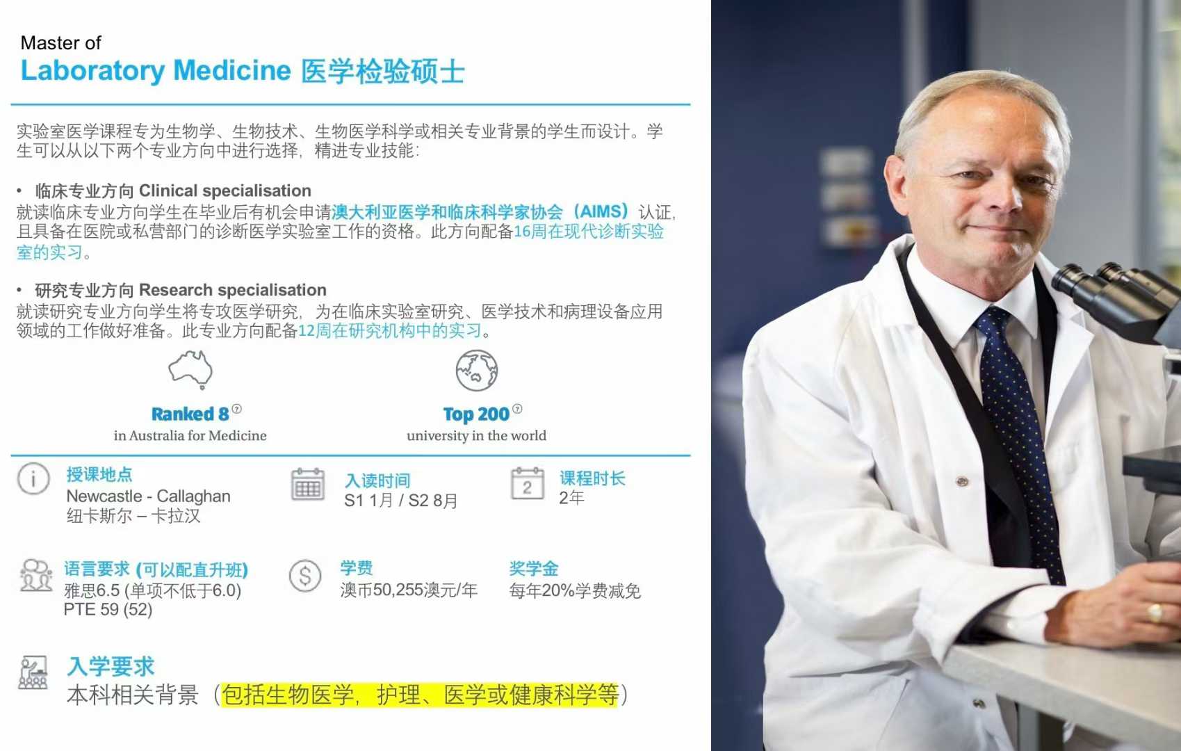 Master of Laboratory Medicine 检验医学硕士课程将在2026.8增加一次开学!